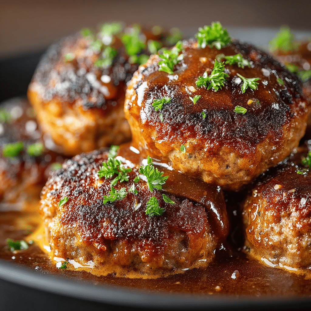 Sear (Optional but recommended): Heat a little oil in a skillet and quickly brown the patties on both sides. This adds color and flavor. Place them in a 9×13 baking dish. (You can skip this and put raw patties in the dish, but searing is better).
