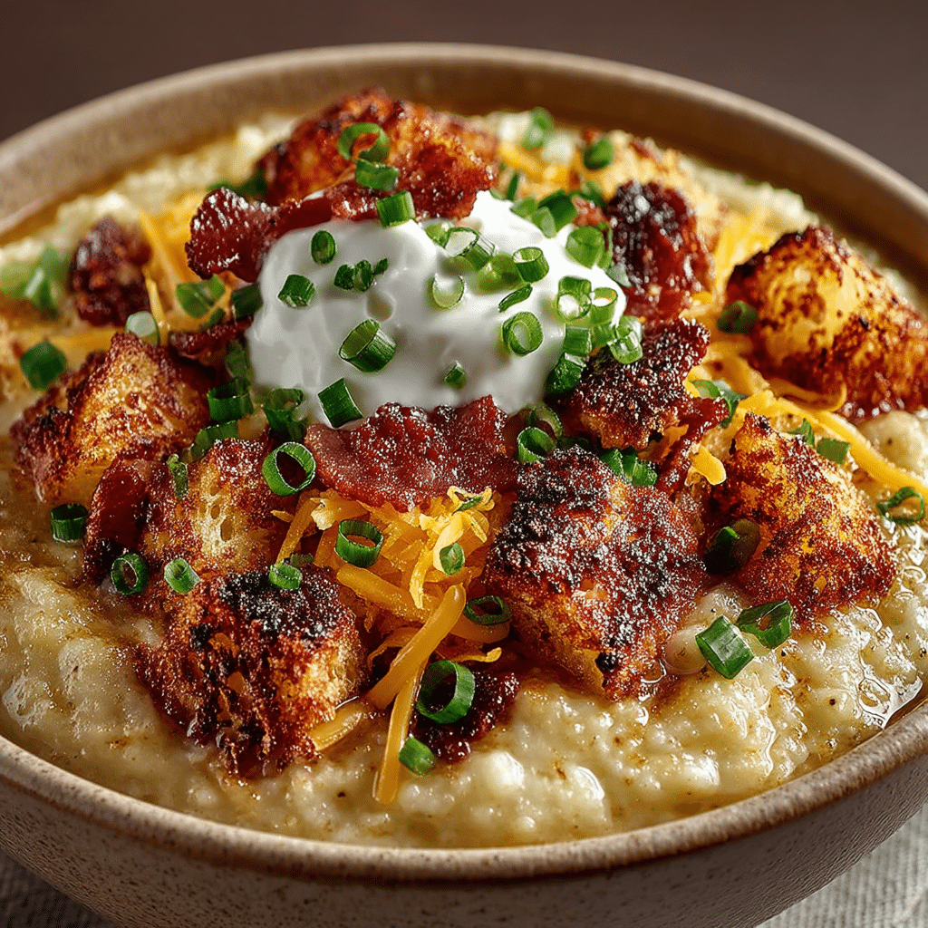 Russet potatoes are the best choice here because their high starch content helps thicken the soup. Bacon (cooked crispy) provides the smoky, salty crunch. Sharp cheddar cheese adds a bold flavor that cuts through the cream. Sour cream is stirred in at the end for tanginess. Chicken broth and heavy cream form the liquid base.