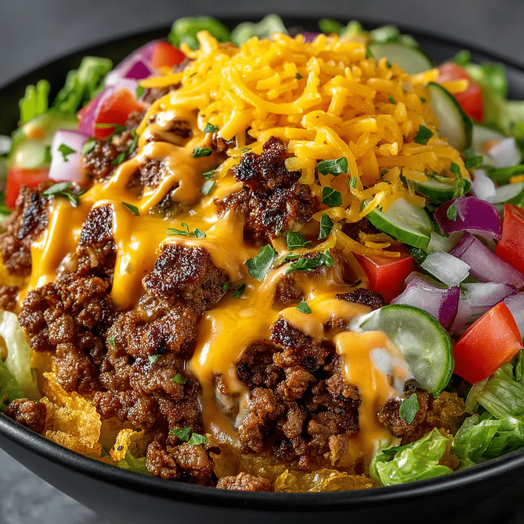 This bowl tastes exactly like a fast-food burger supreme, thanks to the “Special Sauce” and the caramelized beef. However, because you are using fresh romaine, lean beef, and controlling the portions, it is a nutritious fuel source rather than a nap-inducing bomb. It satisfies the craving instantly.