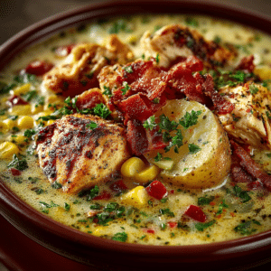 This Creamy Chicken Corn Chowder is a celebration of texture and comfort. It’s thick, luxurious, and packed with sweet corn, tender potatoes, and savory chicken. The “Rich” in the title comes from a combination of bacon drippings, a butter roux, and heavy cream, which together create a broth that is velvety and satisfying.