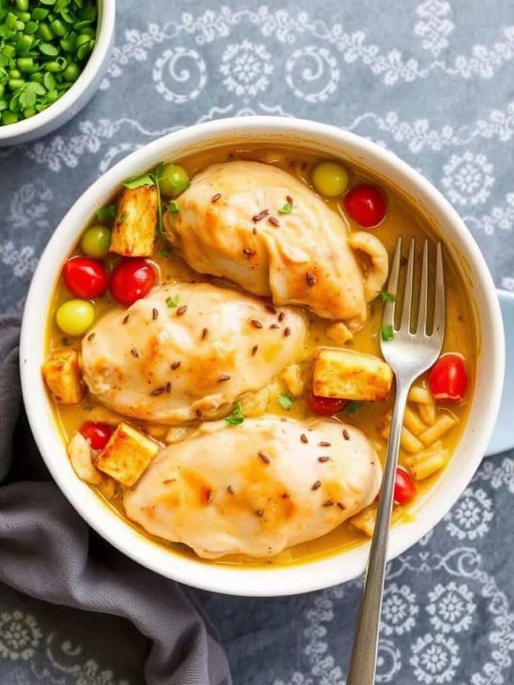 Imagine a Sunday afternoon, and the heavenly aroma of slow-cooked chicken wafts through your home, filling your senses with warmth and comfort. The tender meat, infused with the subtle sweetness of carrots and onions, is the epitome of a cozy meal. This Easy Chicken Bake recipe is a game-changer for those who crave a hassle-free, yet satisfying dinner. With just 5 ingredients, you can create a dish that’s sure to become a family favorite.