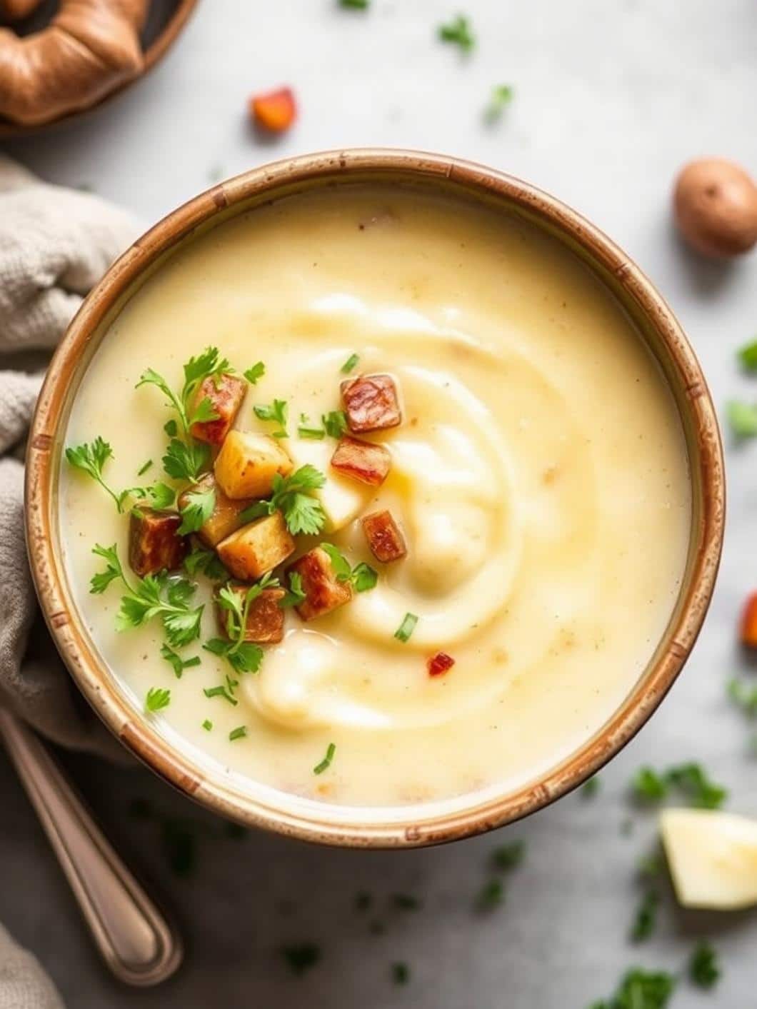 - By cooking the potatoes until they’re tender, then blending them into a smooth puree, we create a rich, velvety base for our soup. It’s a game-changer.