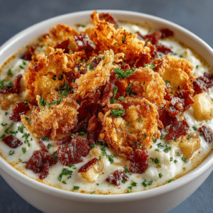 Big claims require big flavor, and this recipe delivers. “The Best Potato Soup Ever” is a fully loaded, creamy indulgence that tastes exactly like the inside of a stuffed baked potato. It’s thick, rich, and topped with all the fixings: crispy bacon, melted cheddar, sour cream, and chives.